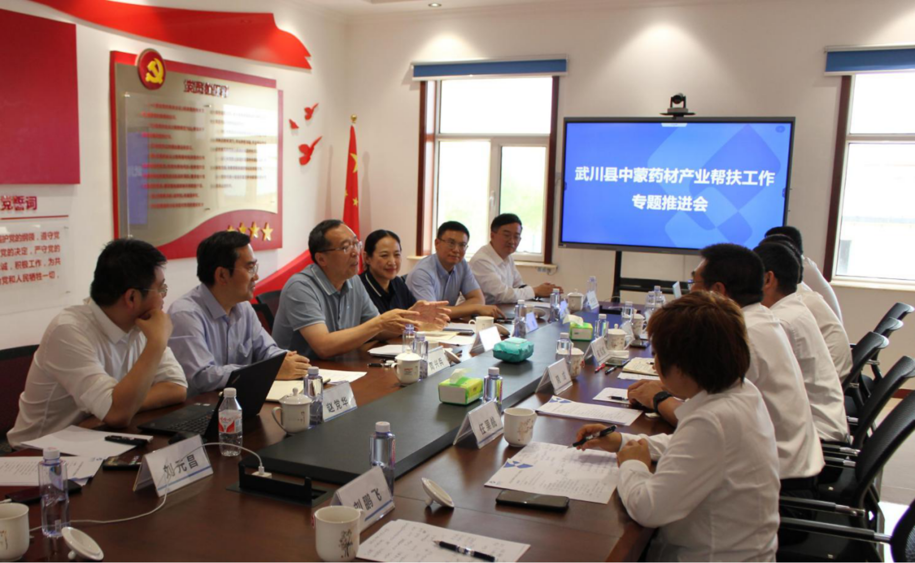 6月28日,通用技術(shù)集團(tuán)黨組副書記、董事張振戎帶隊(duì)赴內(nèi)蒙古自治區(qū)呼和浩特市武川縣調(diào)研中蒙藥材產(chǎn)業(yè)幫扶工作。調(diào)研組一行參觀了武川縣城市規(guī)劃展覽館,調(diào)研考察了內(nèi)蒙古通用中藥有限公司(金三角園區(qū)新址)和中蒙藥材科技小院,召開了中蒙藥材產(chǎn)業(yè)幫扶工作專題推進(jìn)會(huì),聽取有關(guān)工作匯報(bào),圍繞武川縣中蒙藥材產(chǎn)業(yè)幫扶未來規(guī)劃和當(dāng)前困難進(jìn)行深入交流。張振戎從加強(qiáng)產(chǎn)業(yè)幫扶平臺(tái)公司戰(zhàn)略發(fā)展規(guī)劃、市場競爭力和品牌建設(shè)等三個(gè)方面對(duì)下一步產(chǎn)業(yè)幫扶工作提出具體要求。通用技術(shù)中國醫(yī)藥、集團(tuán)黨群工作部負(fù)責(zé)同志,集團(tuán)掛職干部陪同調(diào)研。