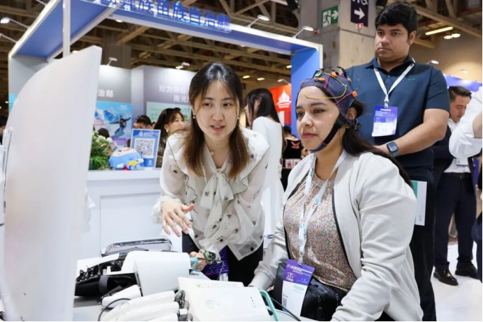 人工智能多模態腦機接口系統成為展示的一大亮點。此次展示的腦機接口設備,融合了先進的核心腦機接口技術,能通過高精度腦電解碼算法實時解析患者運動意念,實現跨任務腦機交互范式,為運動神經功能障礙患者提供了全新的診療方案,適用于腦卒中、腦創傷等患者的主動康復。